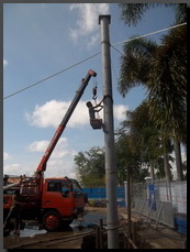 tiang diameter 16 inchi- 22 inchi, menggunakan neon box lampu TL 40 watt philip